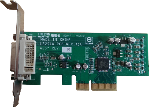 Scheda di espansione video DVI marca Silicon modello LR2910. Scheda "low profile" compatibile con la maggior parte dei desktop SSF. Permette l'aggiunta di una uscita DVI (non compatibile tramite adattatore alla VGA) aggiuntiva.
